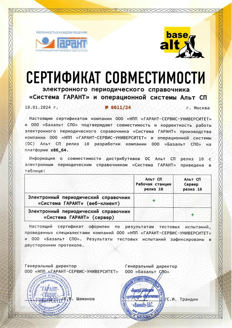 Sertifikat_sovmestimosti_GARANT_i_Alt_SP_10 Опублековано 28.03.2024 в 744 × 1051, Sertifikat_sovmestimosti_GARANT_i_Alt_SP_10 ← Предидущее Далее →